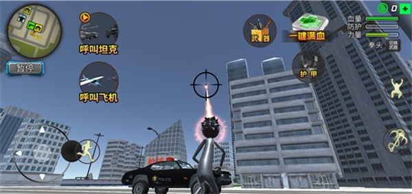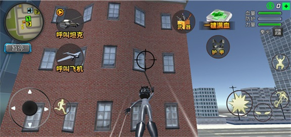 5、若遭遇强敌难以应对,还可通过穿戴护甲提升生存能力,或直接召唤强力支援单位如战斗机、坦克等协助作战,扭转战局。合理运用这些能力,你将真正化身守护城市的超级英雄。