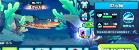 - 拥有211点的基础攻击力,犁头鳐在中体型鱼类中更是佼佼者,不过在20级左右时生命值较低,建议尽快发育。