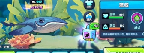 - 蓝鲸是游戏中获取难度较高的强力角色。基础攻击力为180点,生命值达到889点,尽显其庞大的体型优势。