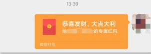 发送完成之后只有指定的人才能够进行红包的领取,其他的人领取则会显示 “仅某某某可领取”,这样红包就不会冒领了。