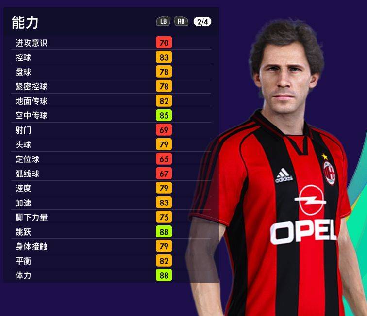 加里内维尔在游戏里数值偏低,不过也算中规中矩,总评83,作为边后卫不算一流,但曼联套可以一用。
