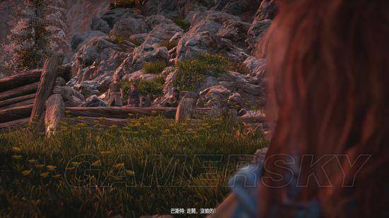 二、跟随罗斯特进入山谷,准备狩猎机器。期间罗斯特也会讲起一些关于这片土地的事。按照罗斯特的指示,按□键蹲伏在高草从中便不会被未察觉的机器发现。