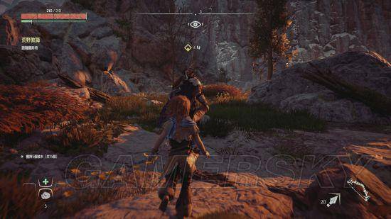 五、罗斯特准备狩猎机器,让Aloy准备一些石头。从路边的地上捡3个石头再跟上他的脚步。