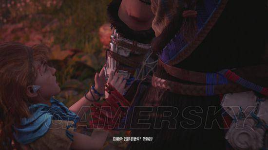 三、和罗斯特对话,这里也会需要玩家选择Aloy的情绪行为。之后的对话得知罗斯特最近遇到了一些麻烦,他也准备在试炼大会前教Aloy烈火箭的制作。