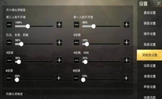 低倍镜(红点、全息和机瞄)设置成55%~60%比较合适。二倍镜用65%,三倍镜选用30%的,后面依次递减5%~7%,这样有利于玩家们在游戏中增加稳定性。