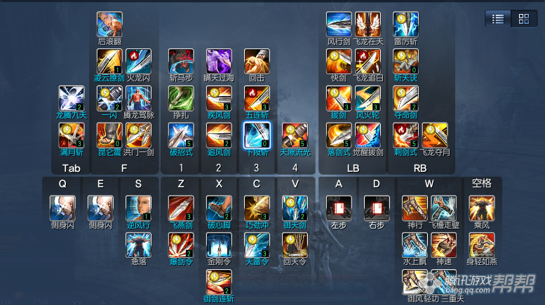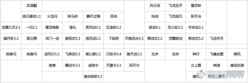 Tips:根据副本需求可以进行调整,如果不需要T,可以吧仇恨技能点掉,【疾风剑】改成2.1,【五连斩】改成1.1,【风火轮】改成3.3;如果需要出血把【追风剑】改成1.1;