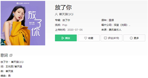 点击试听:放了你——崔天琪QiQi
