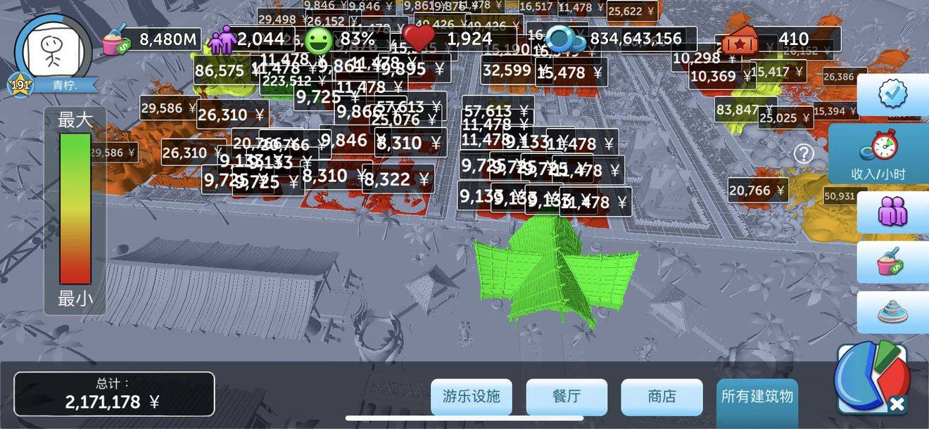 7.不建议大量氪金升级游乐设施,由于收益着实太低,水上乐园没有节日流动以及游乐设施不够多以是氪金换来的每小时最高收入不是许多。