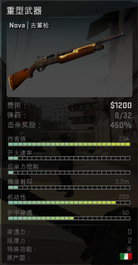 警用单发霰弹枪,威力较大射程始终,但换弹速度慢于其他霰弹枪。