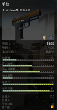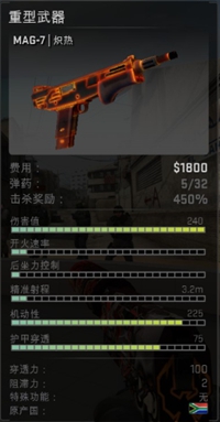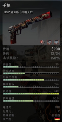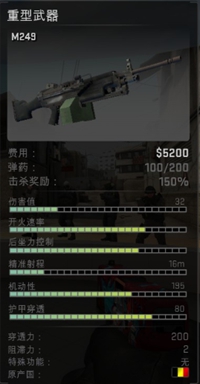 匪徒方默认武器,在近距离无头盔的敌人前均有一枪头部秒杀的伤害;而对带头甲及身体护甲的伤害不高。