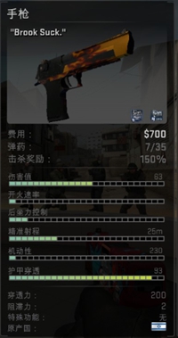 警匪通用武器,中远距离拥有一枪秒杀带头甲的敌人的效果,远距离需两枪。