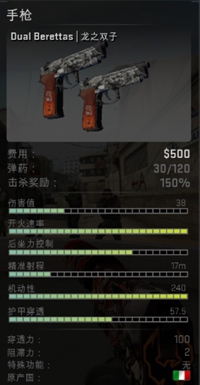 警匪通用武器,由两把博莱塔手枪组成,弹容量高射速快是有点,但精度不足。