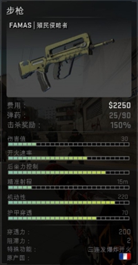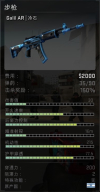 警用突击步枪,弹容量略小于其他,散点小射速快,与Galil相同威力略逊于M4与AK。