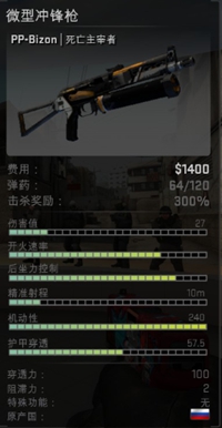 警匪通用,射速极快伤害较高但备弹量少,经多次削弱后仍旧是翻盘利器,近点媲美步枪。