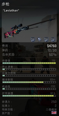 警匪通用,无论多远距离任何护甲均是一枪爆头,CS世上最经典武器之一;备弹量较小,弹道堪称玄学。