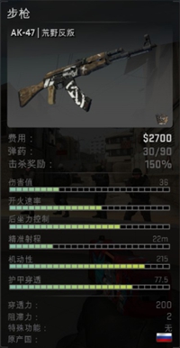 匪用突击步枪,弹容量适中、散点小、射速快,唯一的缺点是伤害略低于主战M4与AK。