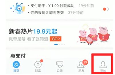 1、打开支付宝APP,进入首页,点击主界面下方“我的”。