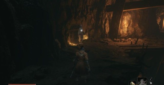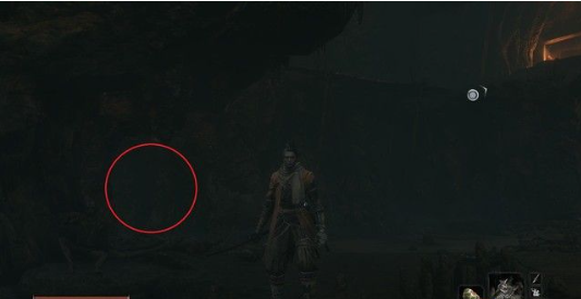回到地牢入口附近,下面有一个深坑。深坑内有一个小洞,这里通向地牢的第二入口以及苇名之底、投身之所。