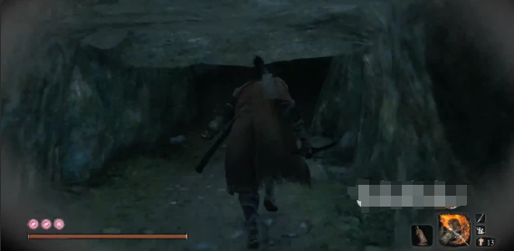 经过攀岩之后玩家可以顺着路来到一个山洞,进入之后往右转可以回到之前上锁房间的内部。顺着路会再次回到山洞,之后再继续走会看到一个敌人,也就是平常说的无头怪,可以看到他身后不远处有一个斜坡,坡上隐约有个洞口可以蹲着进去,进去之后靠墙直走就能找到金刚山佛寺。