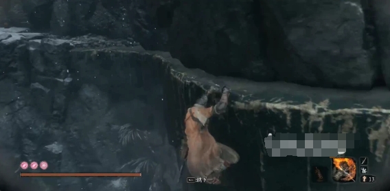 首先玩家需要打完BOSS赤鬼,结束以后先用钩锁上楼,会看到在右边有一个上锁的门,暂时不用理会,先从中间破洞直接穿出去往树上爬,然后转往右侧方向的小路,此后玩家会看到一个寺庙上面贴着告示,紧接着继续利用钩锁移动,从树上往右下方能看到可以攀爬的悬崖。