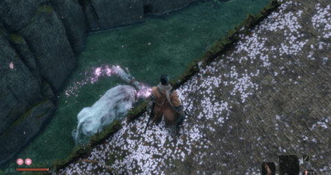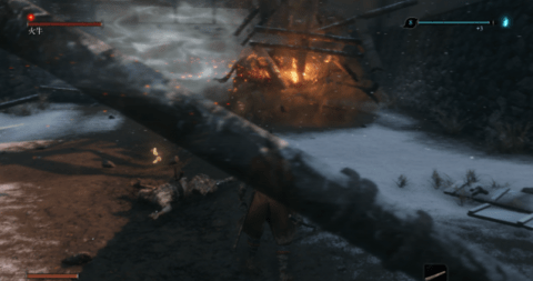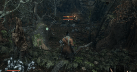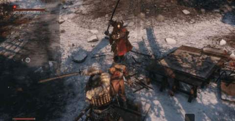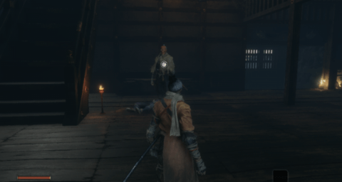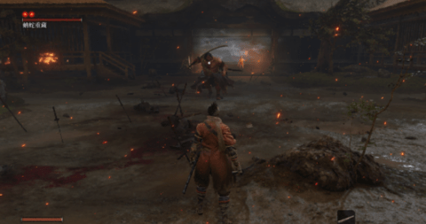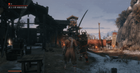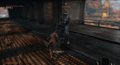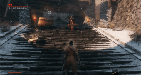 击杀【武士大将松本内藏佑】。从【苇名城主城】的第一个鬼佛处直接上楼可以看到4个小怪和这个BOSS。先清小怪,然后脱离BOSS视野,之后返回爬上屋顶从他背后跳下空中忍杀秒掉一管血。