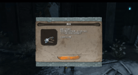 拾取获得。在从【水车小屋】鬼佛处到【破戒僧】的路上,你会路过一个前面聚集着许多小怪(其中一个带着个像钟一样的武器)的房子,可以在门口窃听。之后可以蹲在房子右侧打开地板潜入进去,在一个小佛龛的阁楼里可以找到这个【佛珠】。