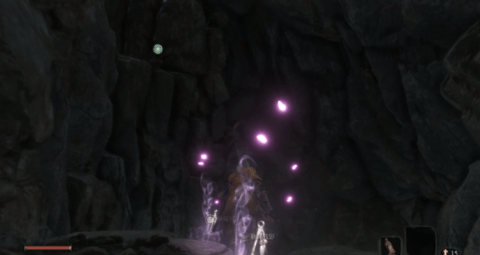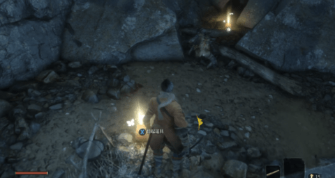击败【长爪蜈蚣峰云】之后,从同一个房间的洞里跳下去,然后下蹲往前走,并从隧道的左侧出去,之后可以在左侧上方看到一个钩绳点,然后一路使用钩绳点到达右侧。沿着黑色的洞穴往右走直到尽头(这里会遇到一些矮人和蜥蜴),之后可以在地上看到金色发光的拾取物,拾取获得佛珠。