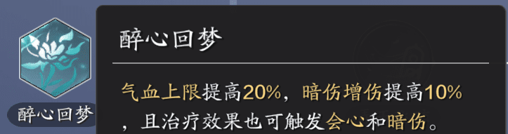 剑香:剑香大部分还是用于论剑,12%攻击加成以及5%暗伤增伤,配合特有的技能机制使得天香在论剑中并不弱势;