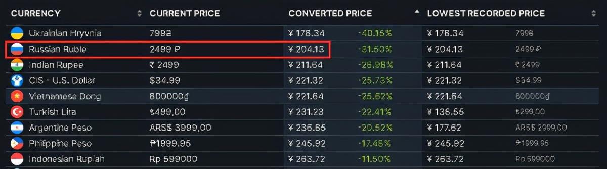 因为steam不同区,其价格相差也贼大,而因为众所周知的某些原因,目前卢布汇率暴跌。