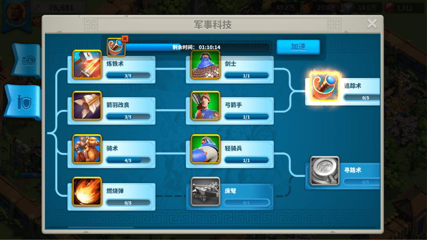 其次便是学院,这是许多新手玩家的误区,有许多新手玩家在开局时都会将所有的资源用来升级学院上。确实,在学院当中学习的东西,他能为你解锁到更好的资源以及科技优势。但是如果你将所有的资源都投入在这上面,你就会发现你根本负担不起学院的升级费用。所以,即使学院要优先升级,那也不能放在最前面。