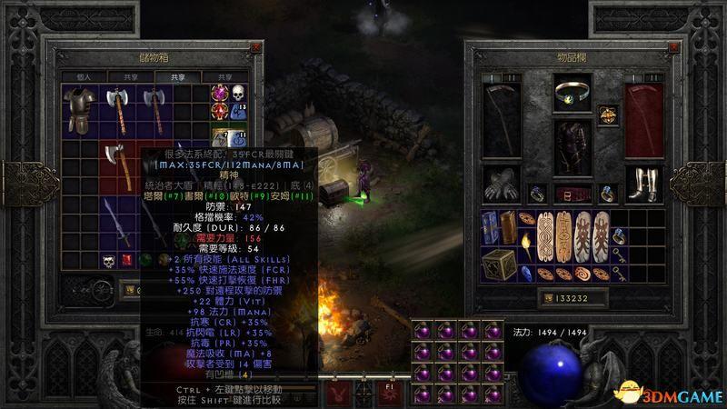 如果在盾牌武器上有所取舍,那么很多时候需要20fcr的法拳、塔格奥之手来补充fcr。