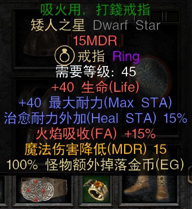 这一阶段我们可以获取一些精英级别的底材,包括不限于统治者大盾(其他法系职业的精神盾底材)、3/4孔精英盔甲、4孔精英长柄等等。如果堆MF的话也可能刷出一些日用暗金,我们可以拿他们去找人交易,目标是换矮人之星戒指和旭日东升项链,这两个暗金装备价值不高,以物易物很容易换到。两件装备都到手还可以考虑去刷地狱崔凡客的三组瘸子。最终目标:混沌避难所在等级超过75,抗性大部分都正并且火抗能达到50%以上,就可以考虑推进度去打第四幕的混沌避难所了。看见有朋友问天拳怎么打A2地洞的电免甲虫,琉璃的建议是run 直接带聚气传送仗纯赶路不打怪就好了。