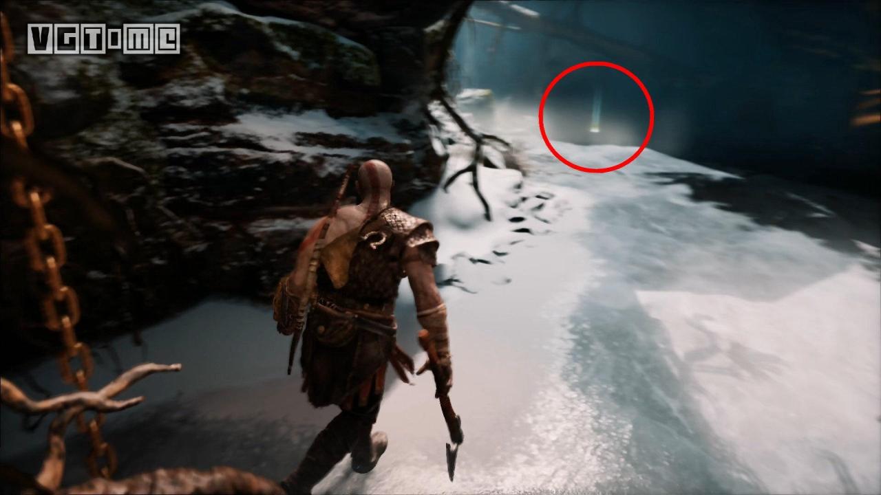 来到有溪水的位置,从左边往上走,继续前进会看到一个可以滑下去的锁链,来到最底部之后就能看到玩具3了。