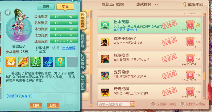 同时达成一定成就也能获得一些特殊的奖励,比如大家都喜欢的宠物碧波仙子,当然了还有玄武、虎女(要求有点高)