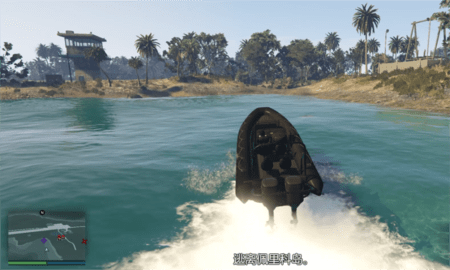 小地图里我们可以开到出海口附近还有个人站岗,其实我们直接开船往外冲就可以,被发现也无所谓,开一小会就结束了,但要是不想被追或者想去机场还是打掉为好。