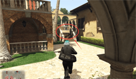 因为单人在正常情况下无法获得豪宅内黄金,因此前往离我们最近的主码头获取次要目标。如果你嫌麻烦不想拿次要目标,或者在豪宅办公室内正好有两幅画拿满了,可以直接出门抢摩托跳海游走。记得往这边游,1分钟左右就可以抵达位置完成任务,其他地方跳海需要游好久。