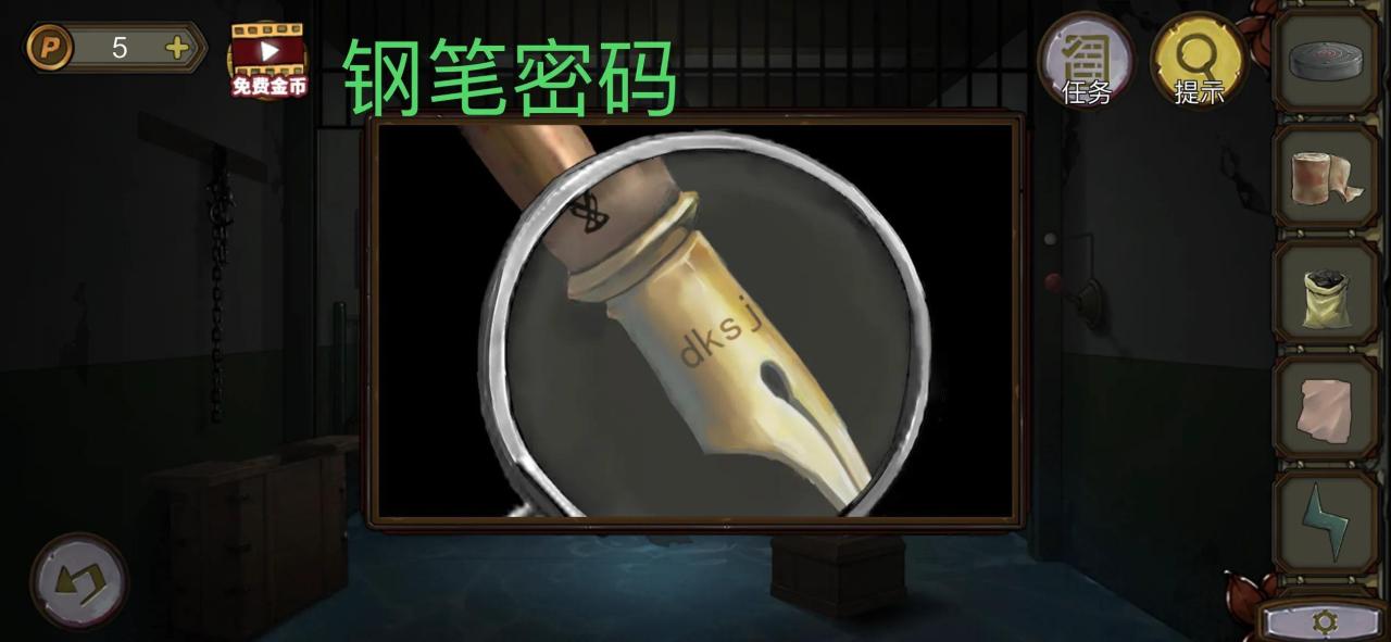 通电后在船舱点击右侧门绿色按钮进入监狱,在地上获得袋子(游戏里叫做铲子)。14.