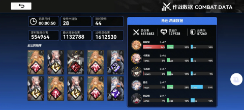 辅助位:卡洛琳可以提供常驻的百分之五十增伤效果,星花和那由他能够提供阵容的输出上限。