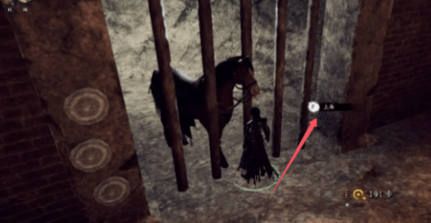 6、当遇到栏杆时,将视角调整至面部,召唤坐骑。