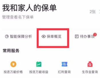 5、紧接着,点击页面中的“保单概览”功能。