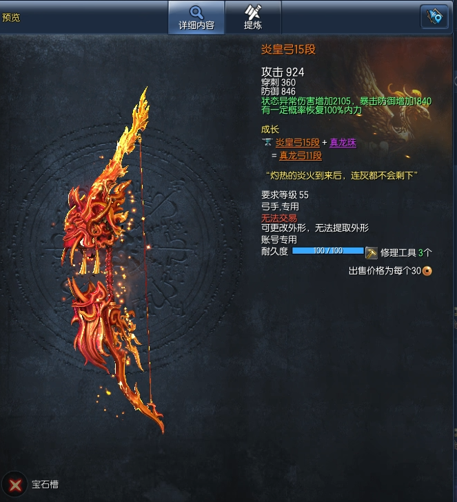 炎煌武器的成长主要材料是曜皇珠,目前耀皇珠价格也不高,非常适合平民玩家。