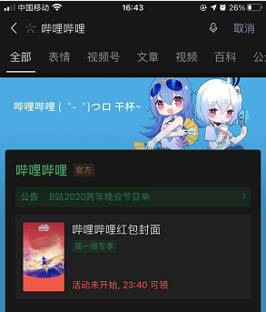 首先打开我们的微信,然后在搜一搜里面直接搜索【哔哩哔哩】,然后我们就可以看到领取的入口了;