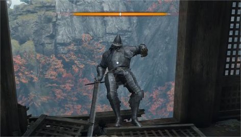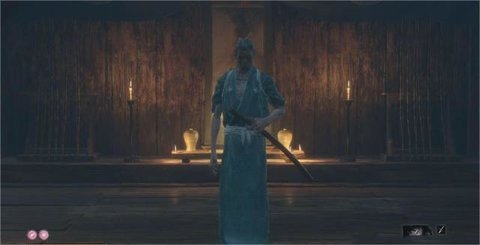 右侧(顶层)分割成了许多小房间,沿路将穿蓝色长袍的武士清理掉,然后会看到天花板上有个洞(有一个钩绳点),然后使用钩绳进入夹层并往前走,再从破洞处跳下,注意该房间中会有许多敌人,不过旁边的门出去就可以看到【天守阁上层 苇名流道场】鬼佛,可以在这里休息,鬼佛的旁边有一扇关闭的门,推开门进入房间即可看到这个BOSS。