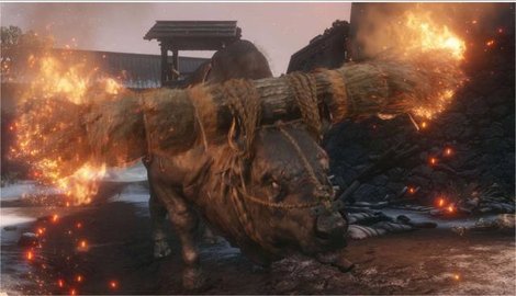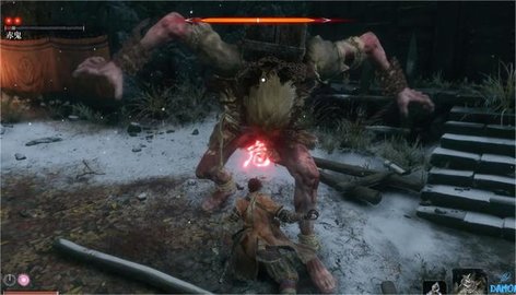这里有许多房子正在燃烧,路过一个池塘之后即可看到这个BOSS。BOSS面前有一位武士,跟他交谈的话他会跟你一起战斗,这样的话会降低打酒鬼的难度。