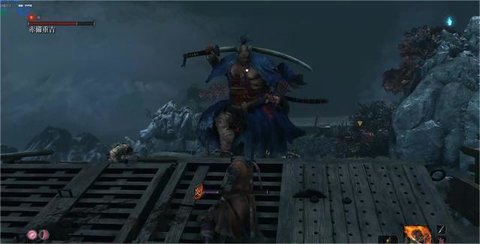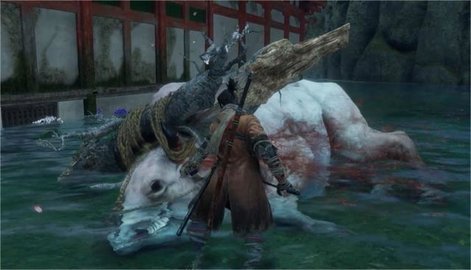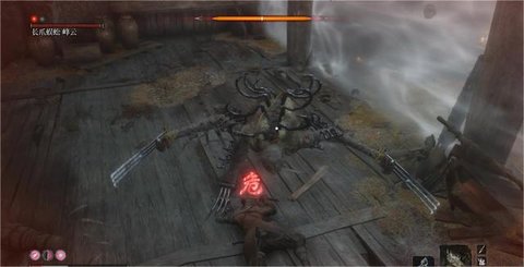 从【苇名城 贮水城区】鬼佛处往左走跳过两个树枝到达前面的地上,面前会遇到敌人,绕过去后面会遇到一个敲锣的敌人,绕过他或杀掉他往前走可以看到悬崖,使用钩绳到达悬崖的另一边会看到一个友好的武士,旁边有一个洞,跳下去就是这个BOSS,可以直接从洞里跳下去忍杀秒掉第一管血。