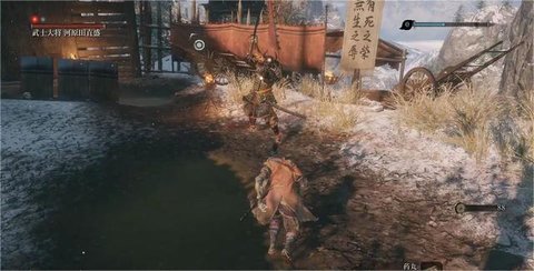 在击杀BOSS【鬼庭形部雅孝(骑马那个)】之后穿过战斗区域走上楼梯,进入建筑,里面会有一个非常友好的武士想与你交谈,暂时先不要理他。