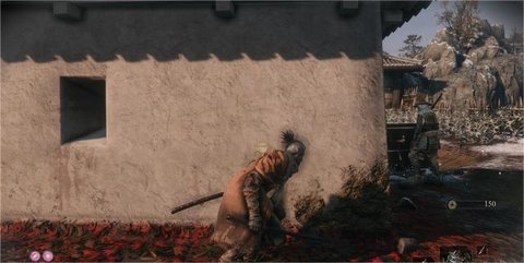 有个比较方便的技巧就是可以先偷偷摸上左边的屋顶,然后看到红点之后空中跳杀,直接秒掉他的第一管血,这样就只用打他的第二管血了。