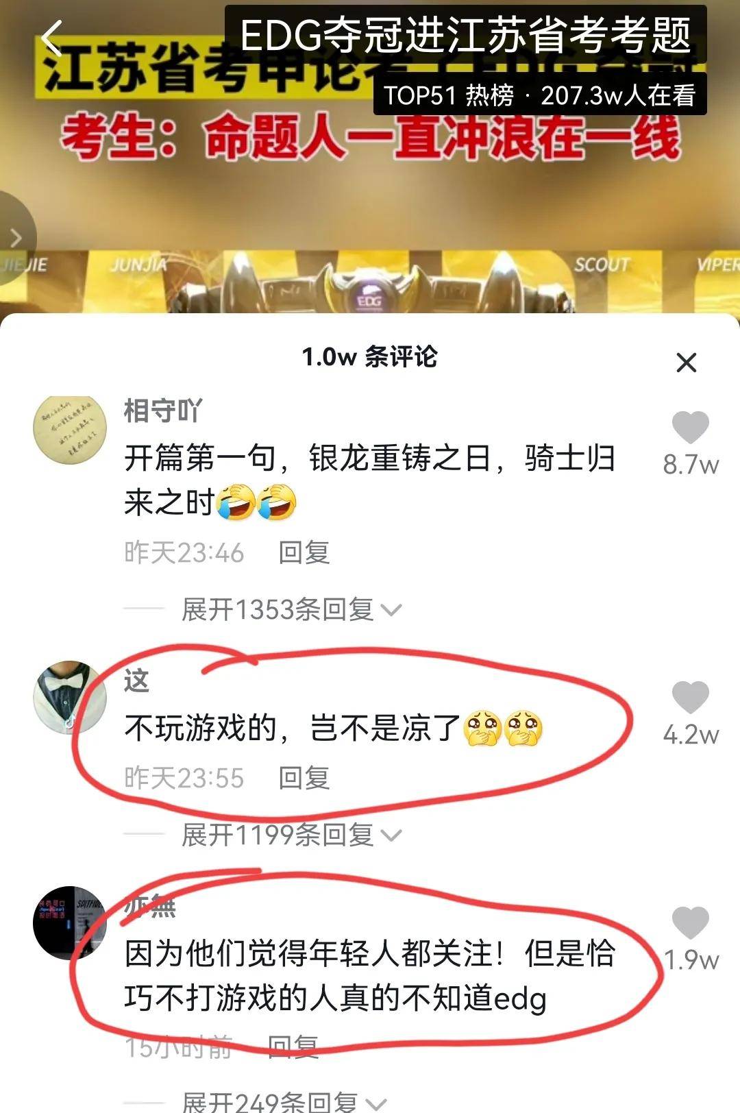 那么,大家觉得“edg夺冠”进入考题对部分考生公平吗?游戏的大力发展对我国是否有利呢?